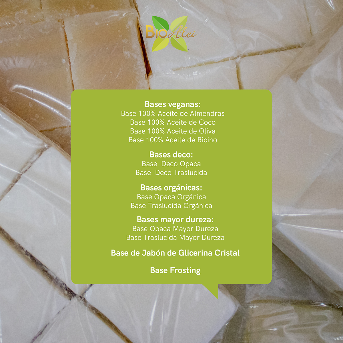 Jabón de glicerina de gran transparencia, equilibrada detergencia e hidratación, ideal para jabones decorativos. biodegradable e hipoalergénico.