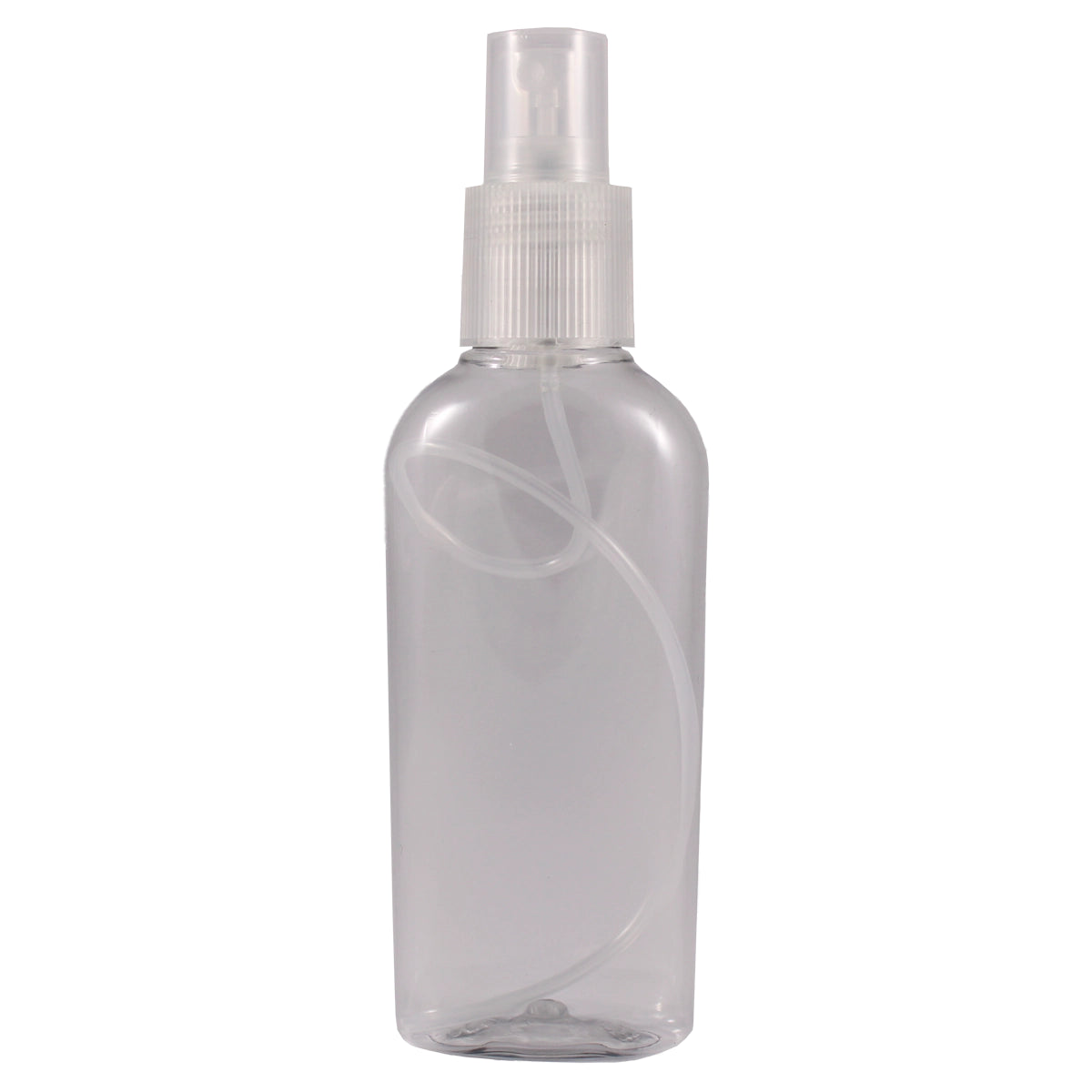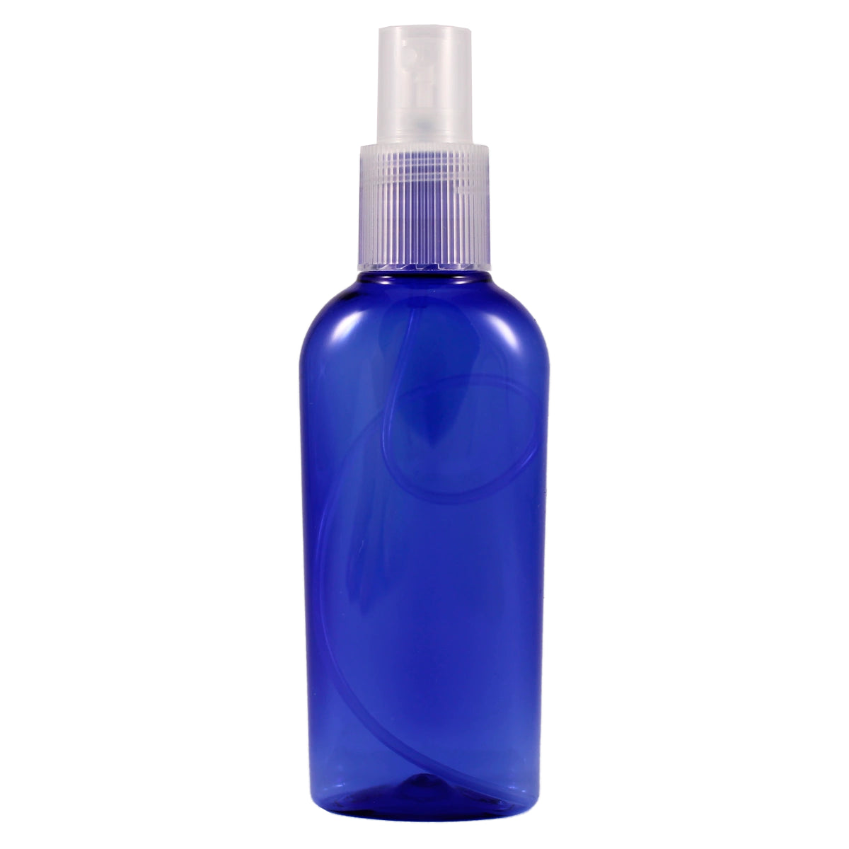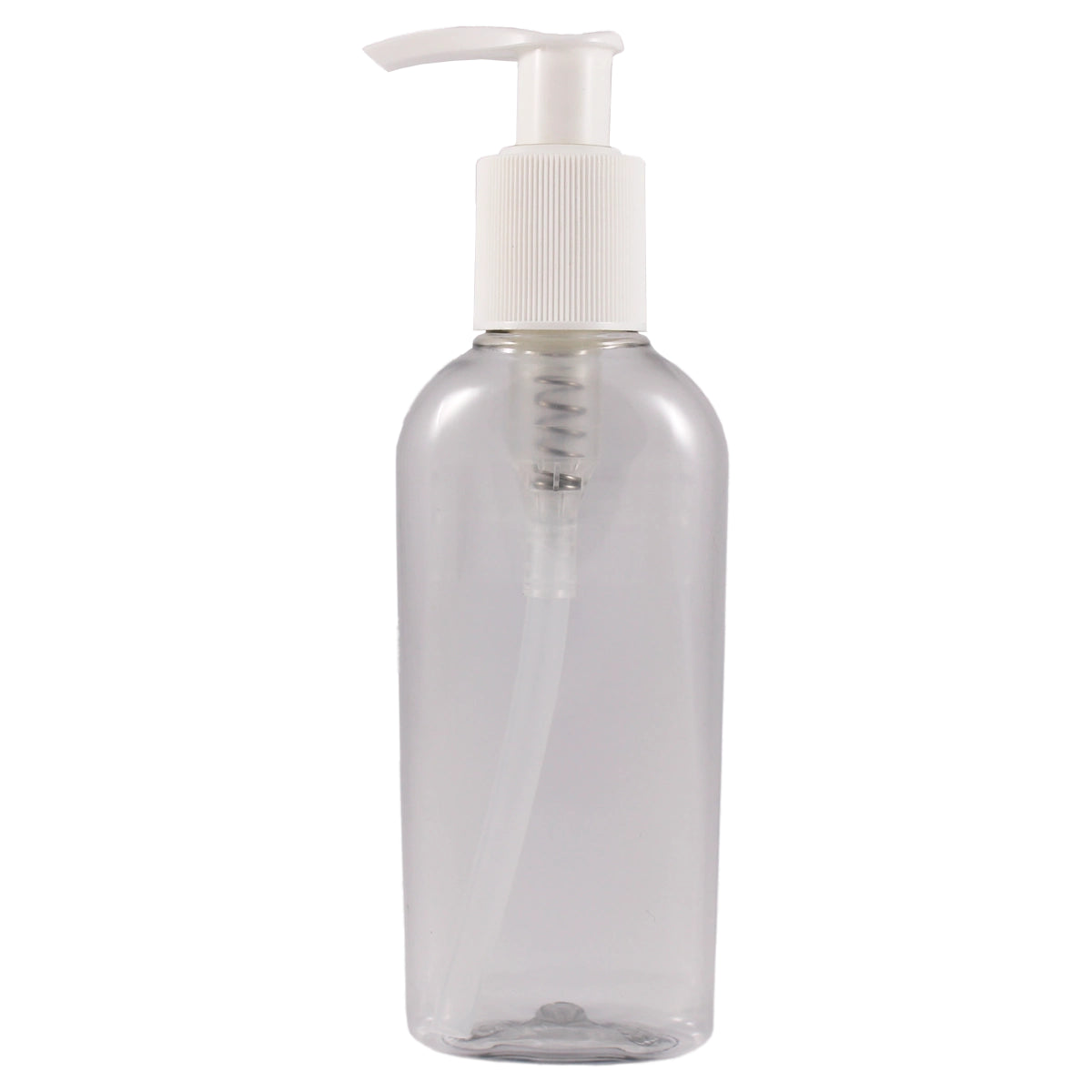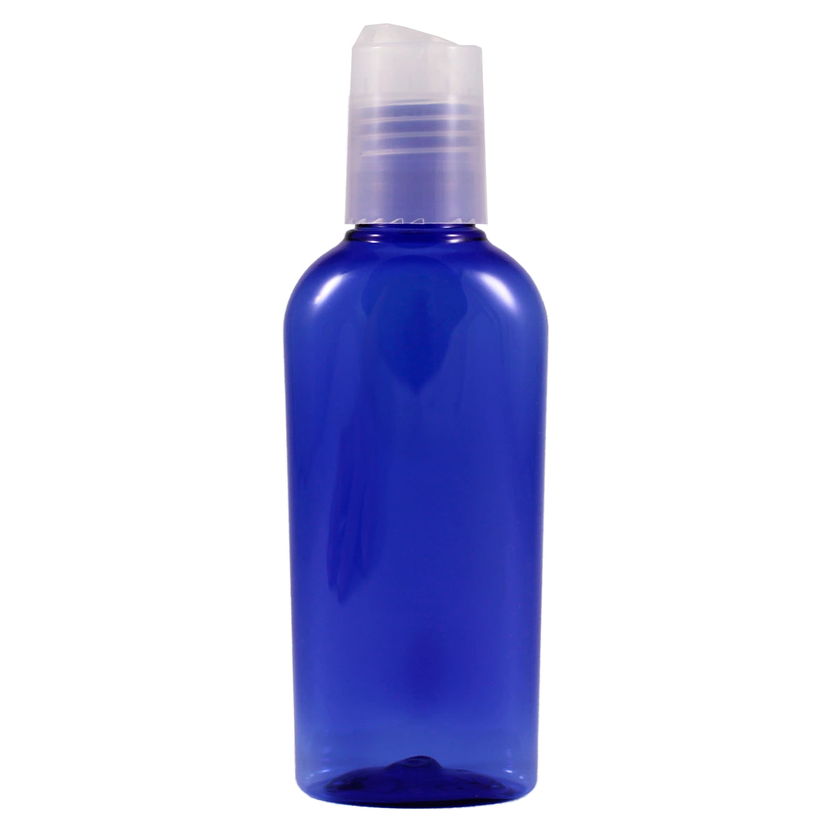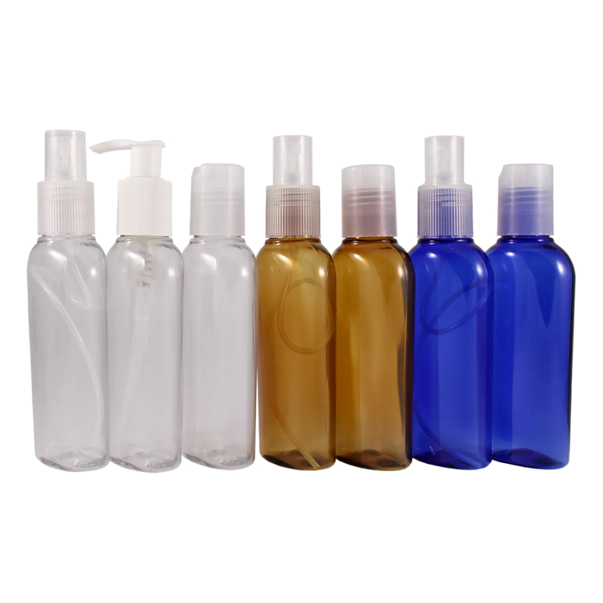 Botella Oval 125 ml de plástico transparente, ámbar y azul.