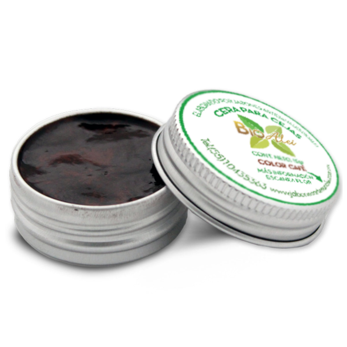 Cera para moldeo de ceja, barba o cabello, base 100% natural (libre de grasas y derivados animales). Elaborada con aceites, ceras y mantecas naturales de origen vegetal y mica color café.