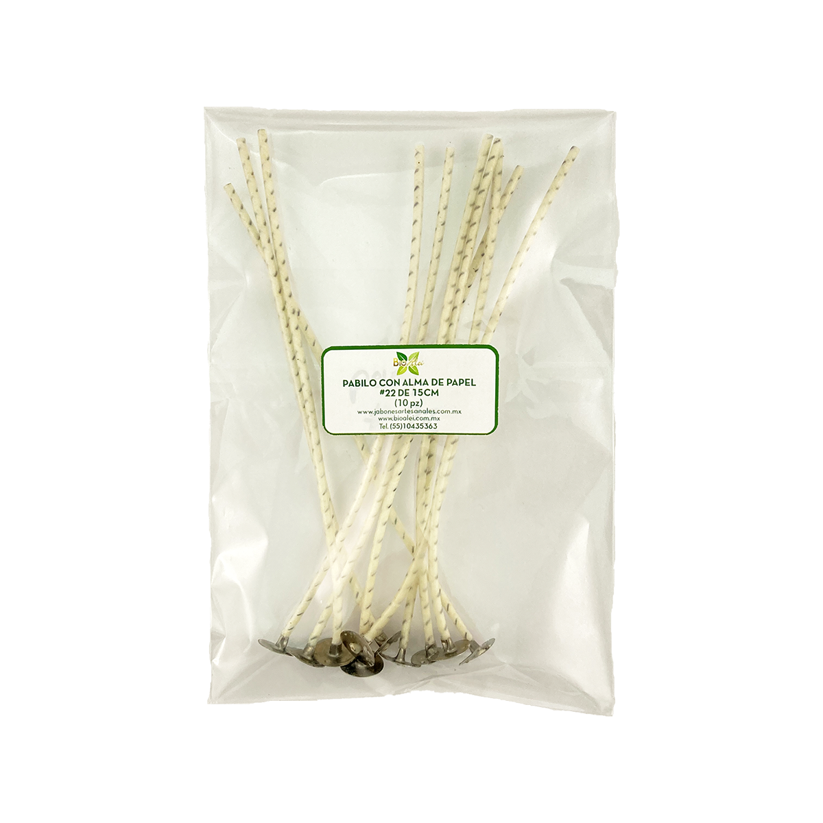 Pabilo con alma de papel #22 15cm para velas de 4cm a 6cm de circunferencia 10 Piezas