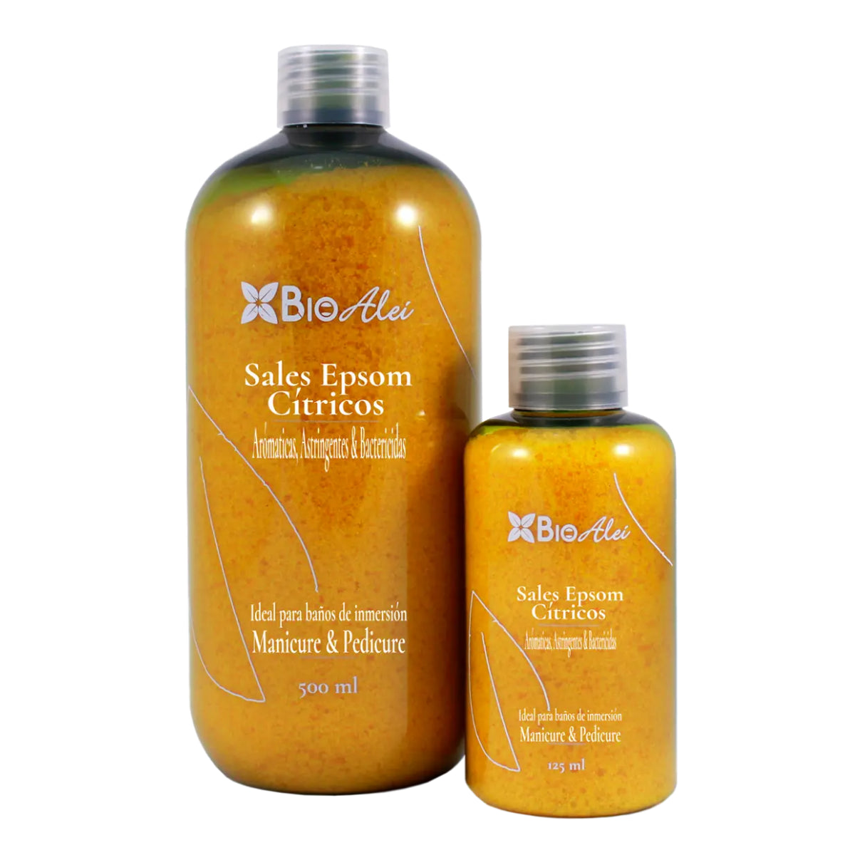 Sales aromáticas, astringentes y bactericidas. Aceites y exfoliantes naturales de bergamota, toronja, naranja y limón.
