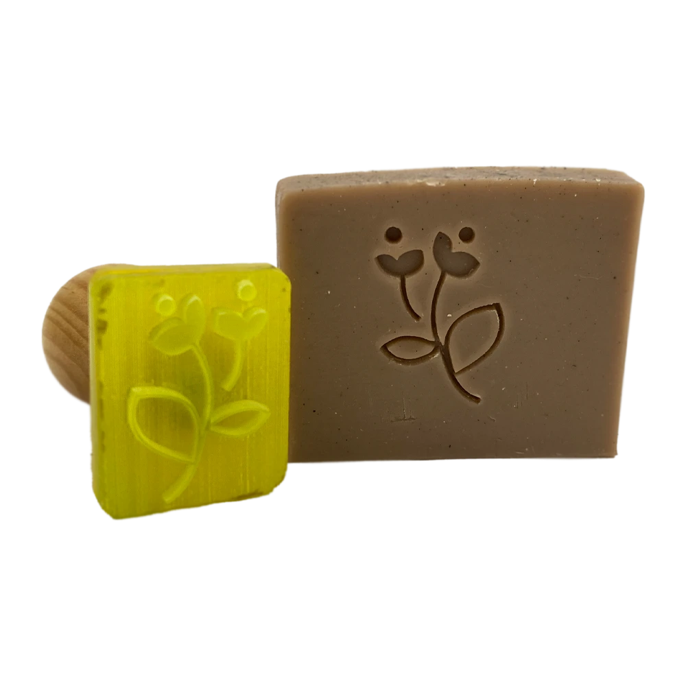 Sello fabricado en acrílico con base de madera personalizado para jabón.