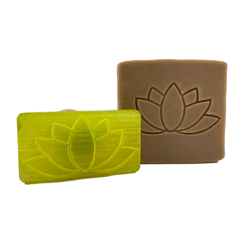 Sello fabricado en acrílico con base de madera personalizado para jabón.