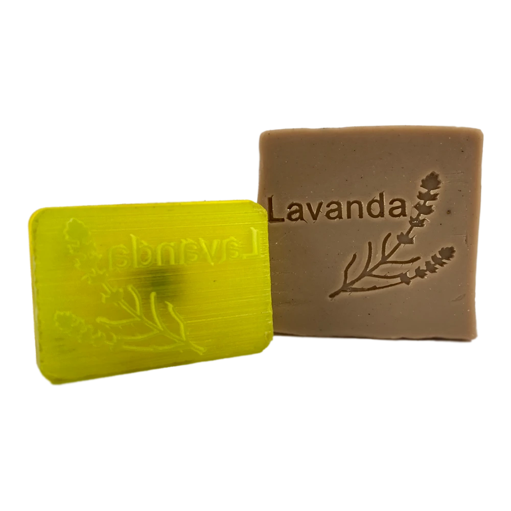 Sello fabricado en acrílico con base de madera personalizado para jabón.