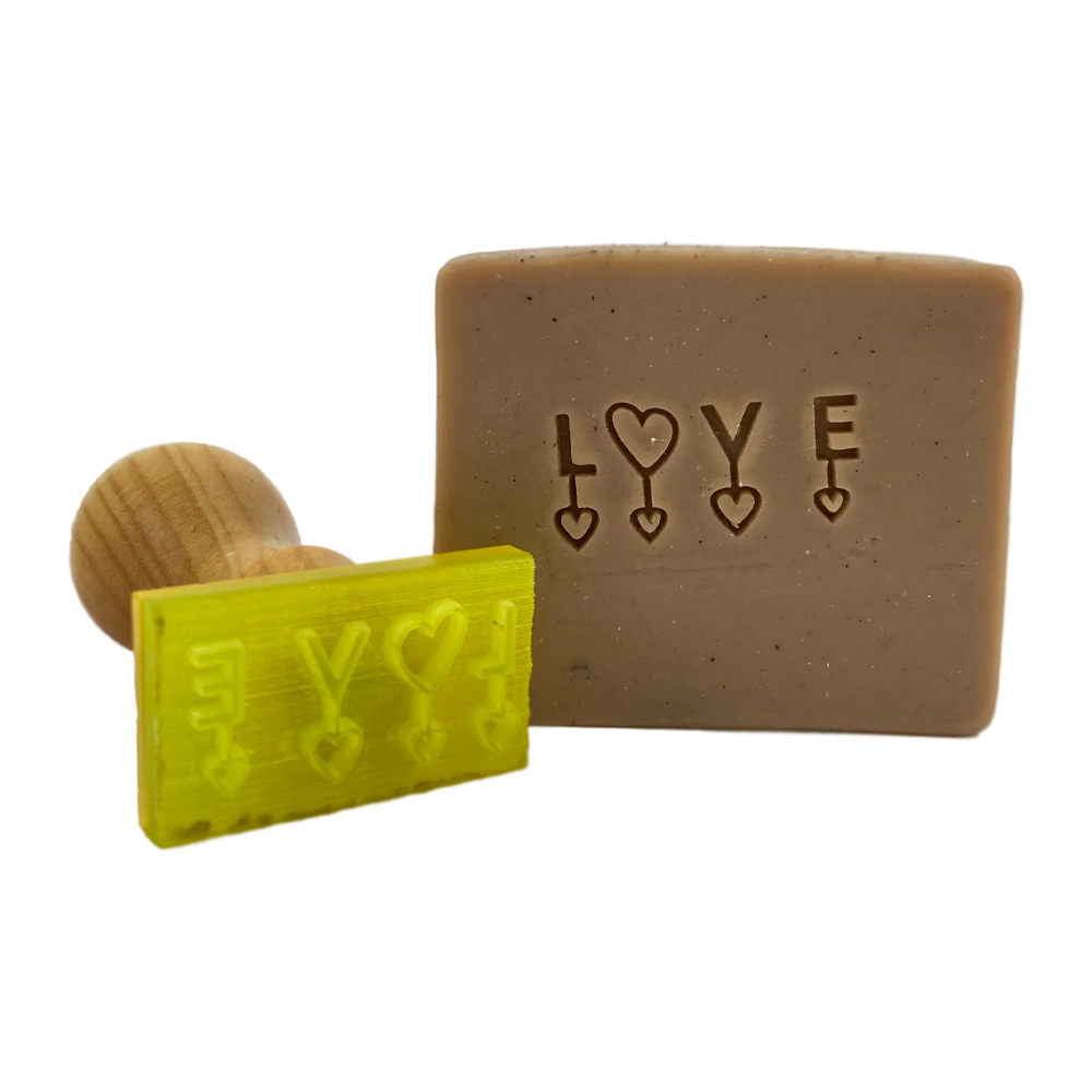 Sello fabricado en acrílico con base de madera personalizado para jabón.