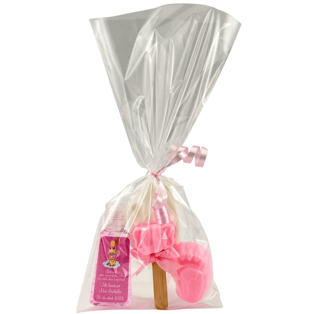 Incluye un gel antibacterial de 30 ml y dos jabones personalizados de 47g o 33g.