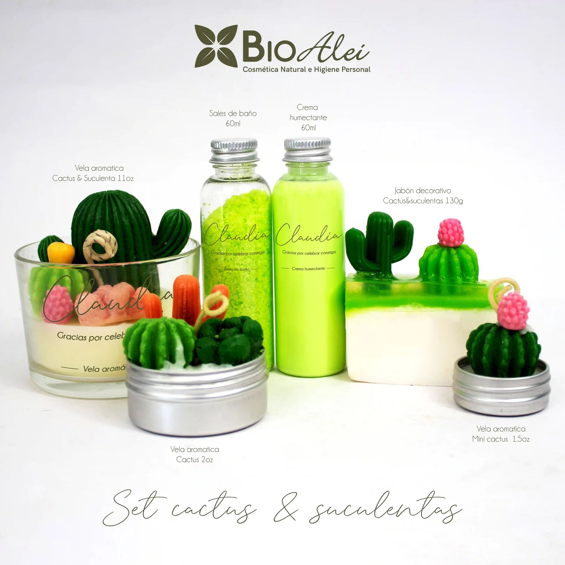 - Caja kraft con 1 crema aromática de 60 ml, 1 sal de baño de 60 g, 1 jabón decorativo de 130 g y 3 velas aromáticas de 11 oz, 2 oz y 1.5 oz.