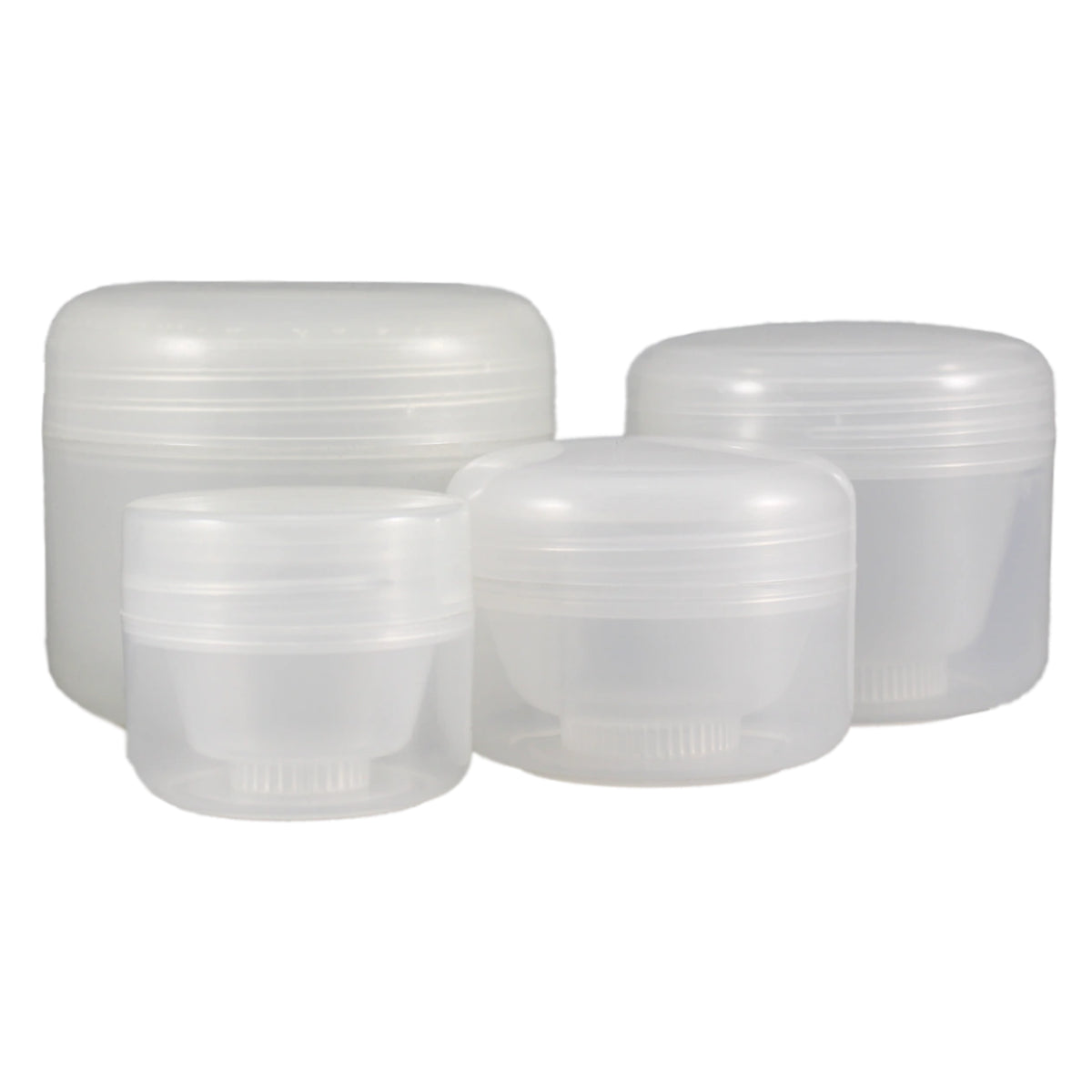 Tarro cremero doble fondo de plástico transparente, ideal para cremas, pomadas, bálsamos, etc.