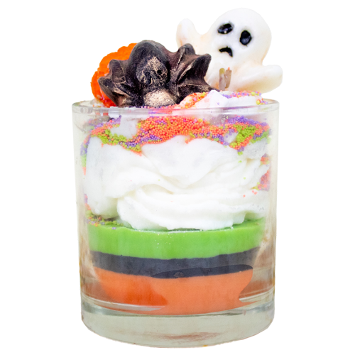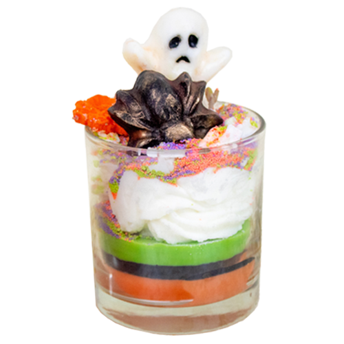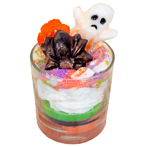 Vela decorativa de cera de soya con fragancia de pay de calabaza.