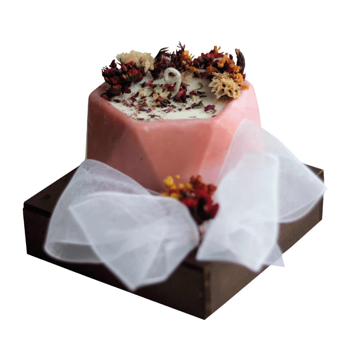 Vela floral, decorativa, aromática, artesanal, con una combinación de parafinas.